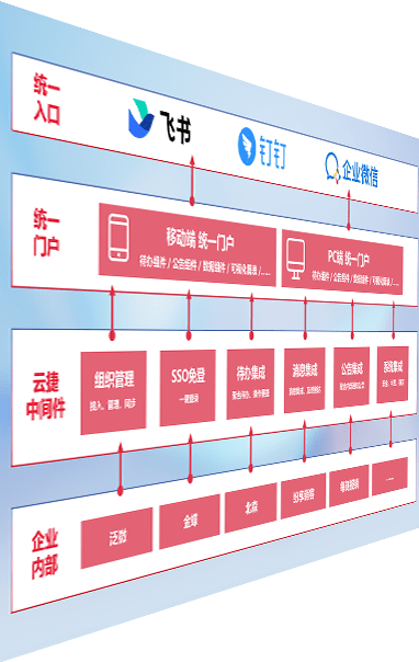 对协作平台提供支持服务,,,支持企业应用与协作平台对接,,,包含组织同步、、、、消息集成、、、、待办集成等。。。支持目前主流的协作平台:钉钉、、、、企微和飞书。。